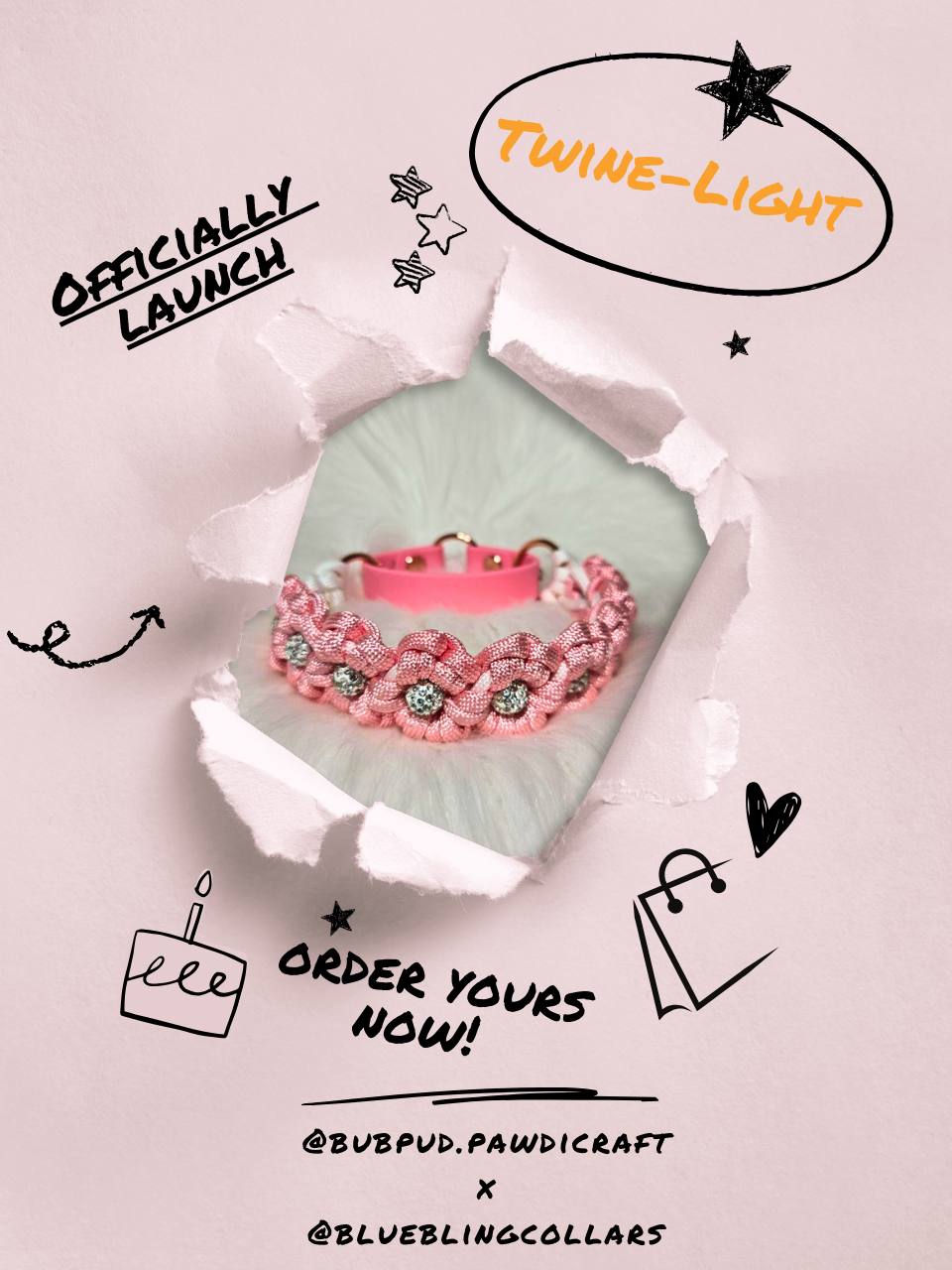 Upgrade every walk into a luxurious moment with our customised Biothane x Paracord Twine Light Biothane Martingale collar specially designed in collaboration with @budpud.pawdicraft! Crafted from rugged, waterproof Biothane and adorned together with Paracord Flower Design of Flower Blings + sparkling crystals on the Biothane strap, this collar blends durability with high-end fashion for a standout look.