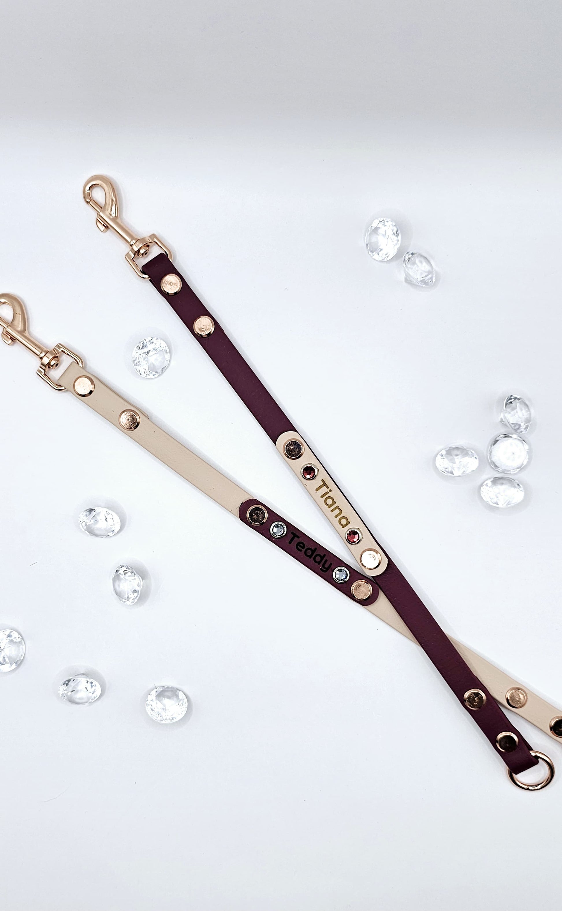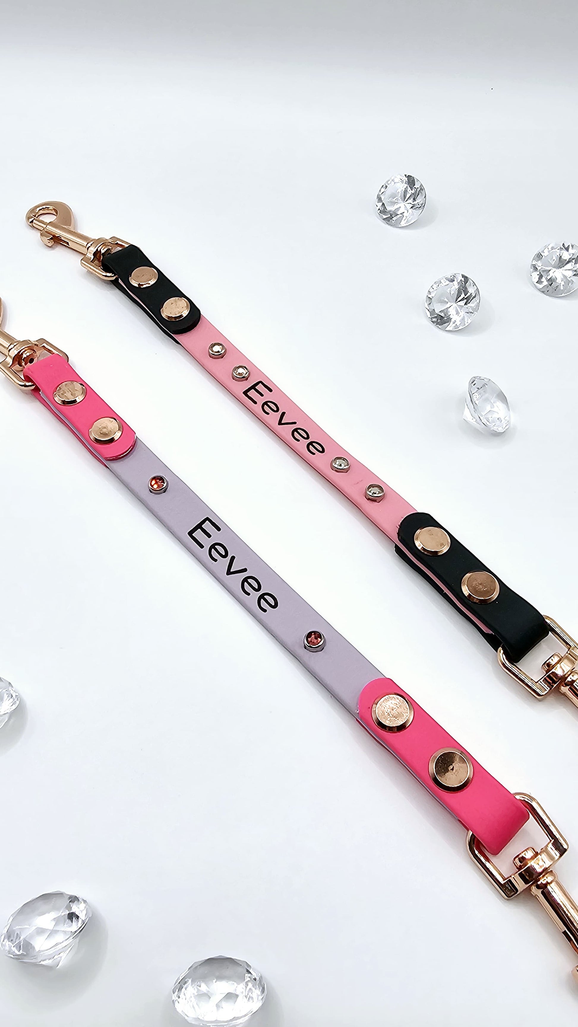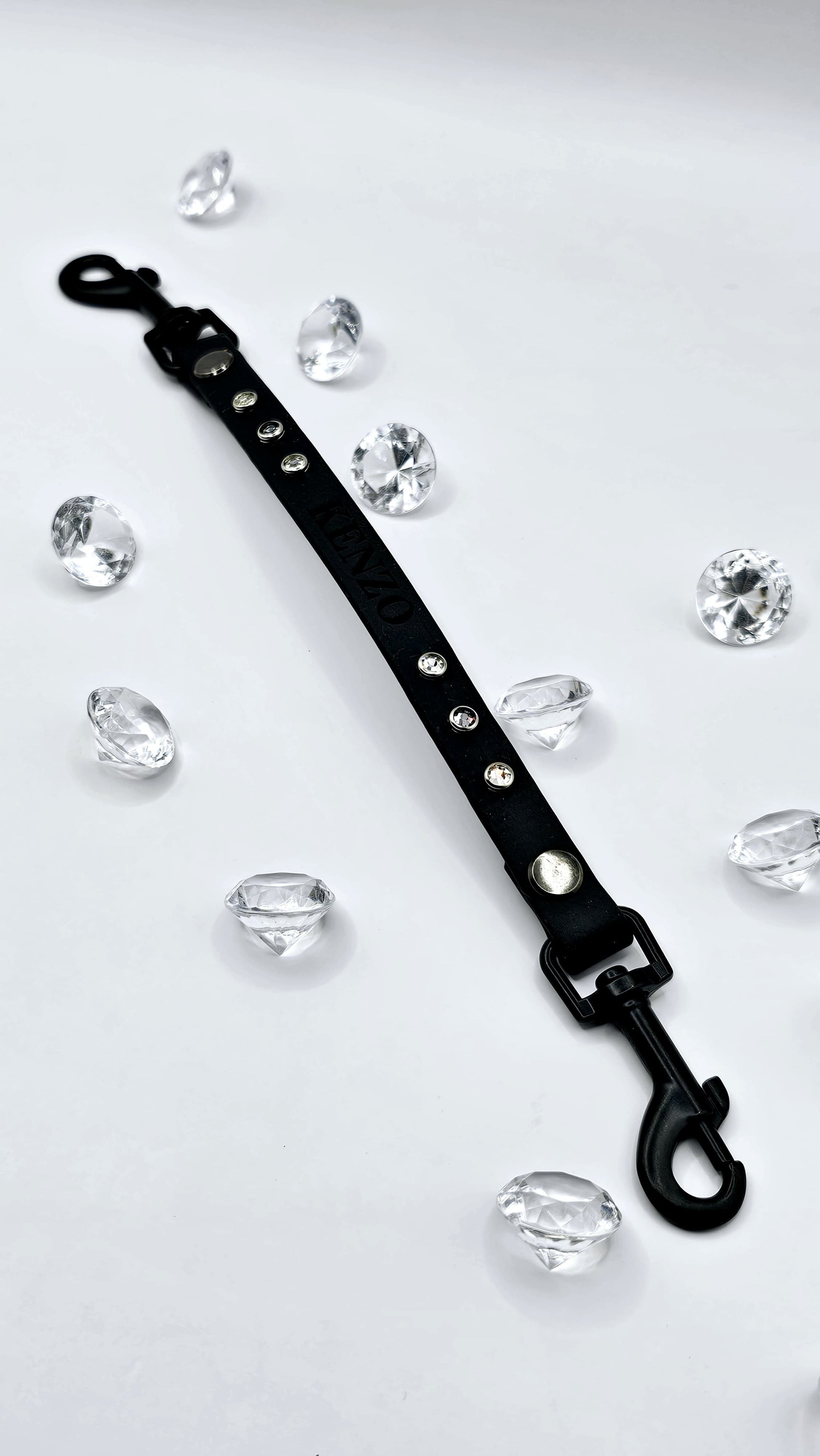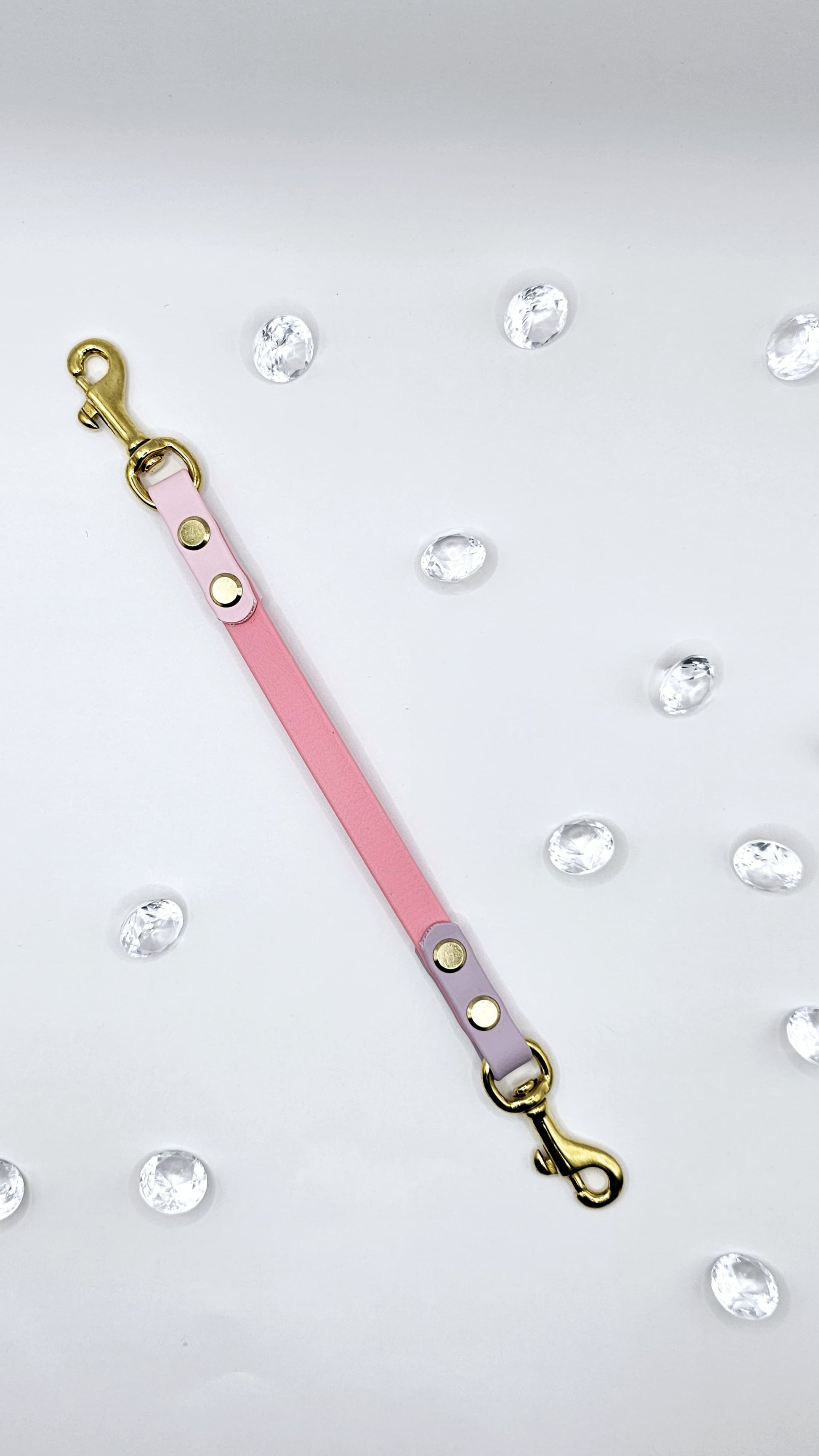 Enhance every outing with our Biothane Crystal V-Design Connector — the perfect leash attachment for carriers, and pet strollers. This stylish connector is crafted from durable Biothane for a secure, weatherproof handle and strap, then elevated with elegant crystal accents in a striking design. It adds a touch of luxury while keeping your pet safely tethered on the go.