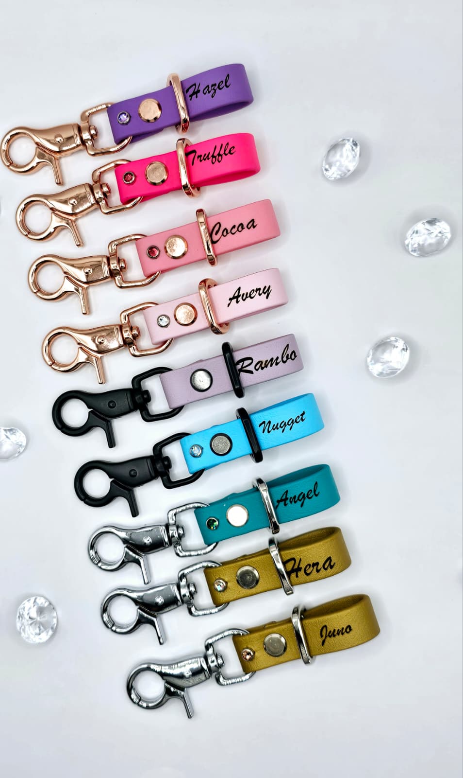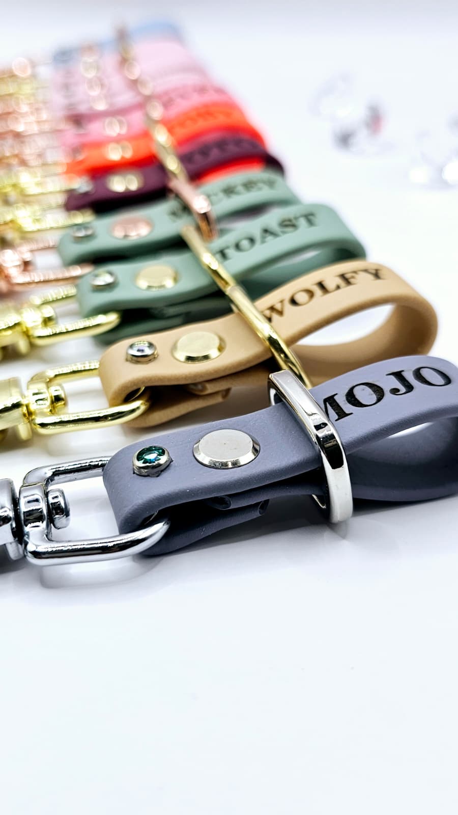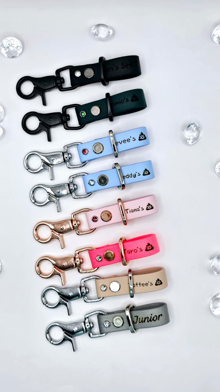 Carry poop bags with style and ease. Our Biothane FOS Holder (Full of Shit Holder) clips securely to your dog leash, keeping bags handy for quick cleanup. Durable, waterproof, and customizable with a shimmering crystal and even your furkid name!.